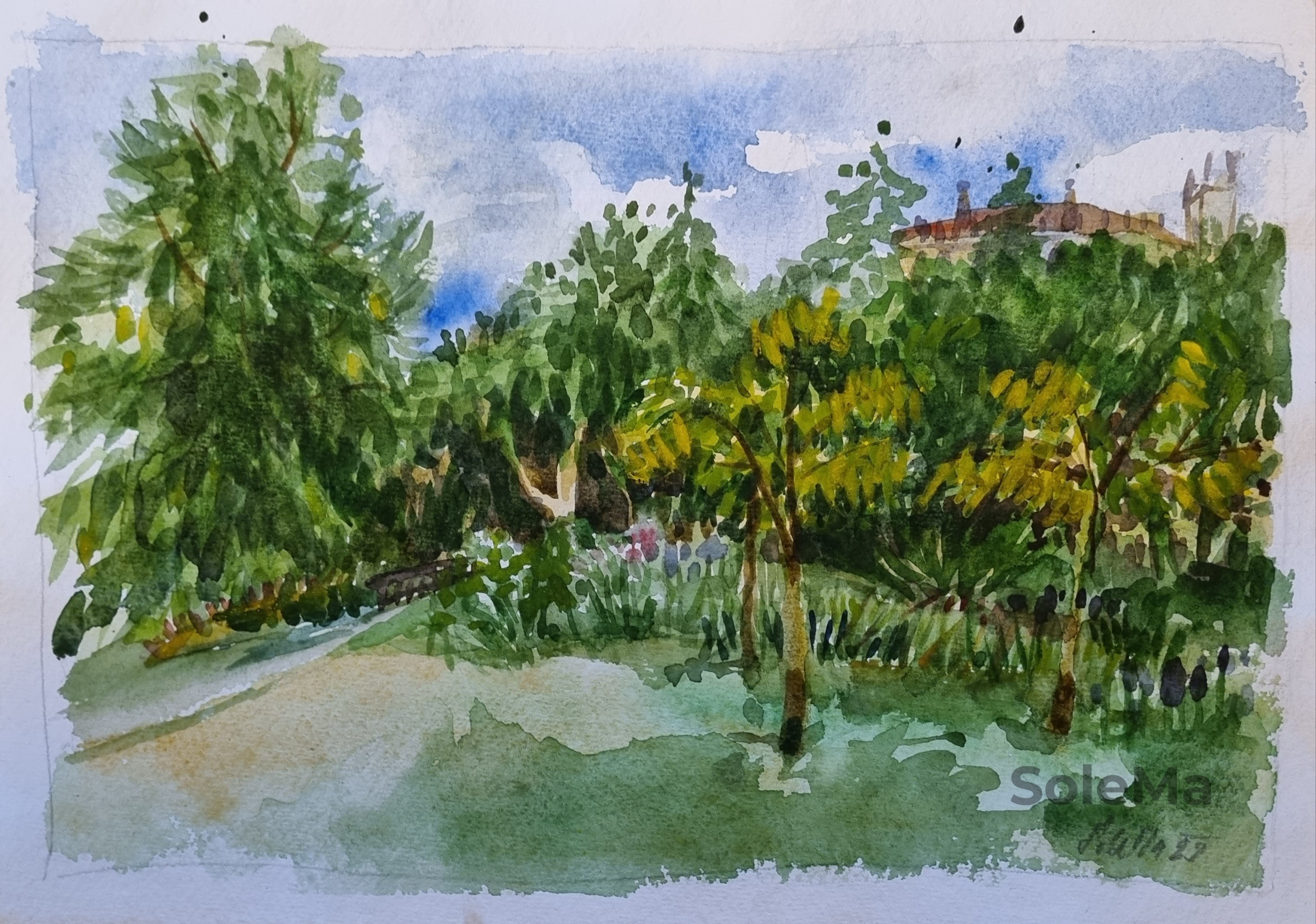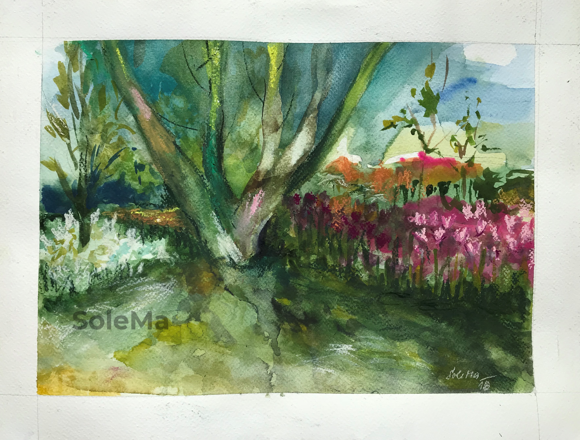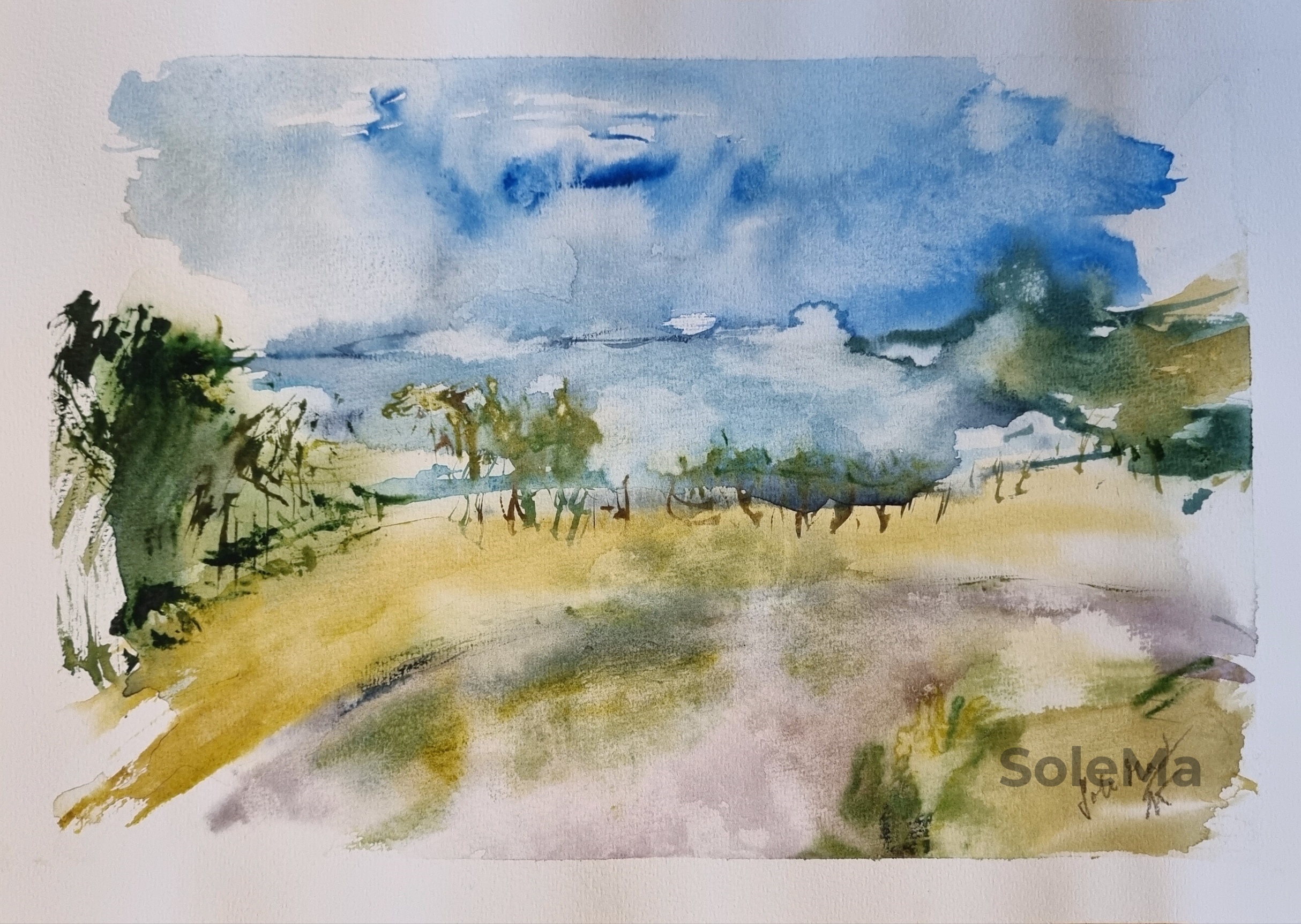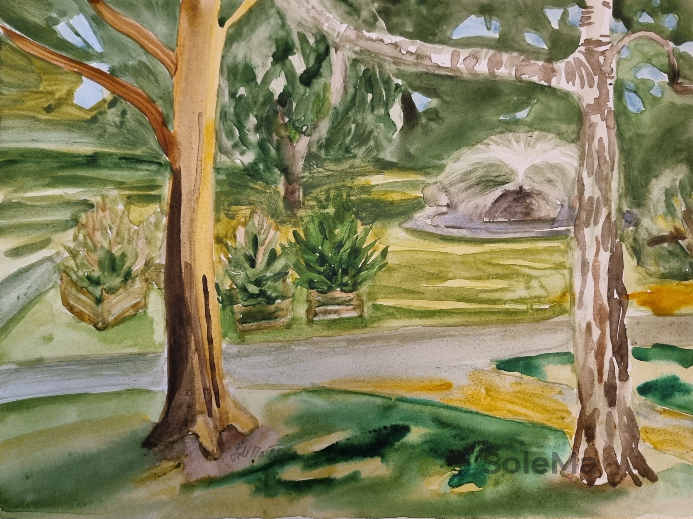 Original watercolor on 300 gsm Artistico Fabriano 100% cotton paper. Paper dimensions: 55 x 76 cm. Artist-quality Daniel Smimth watercolors. Note: colors are brighter than on photo