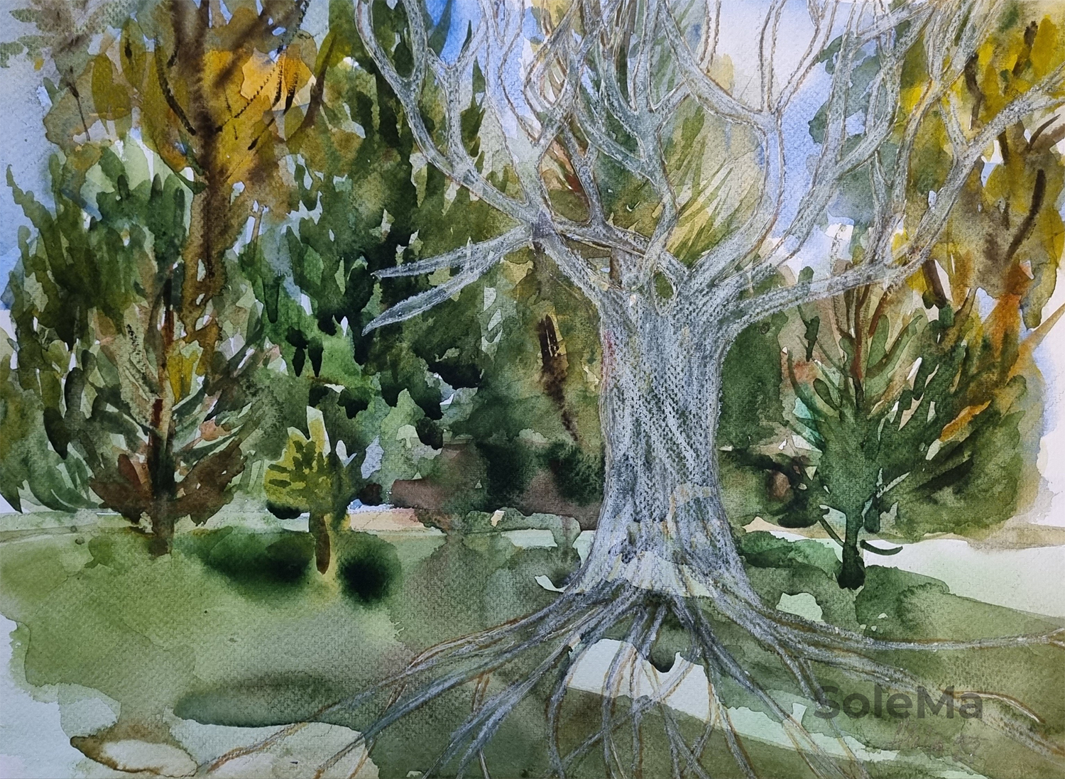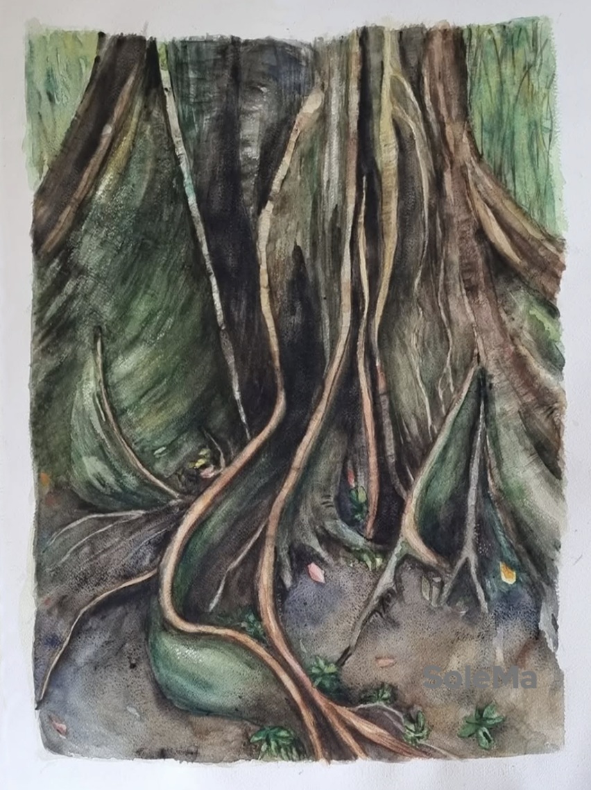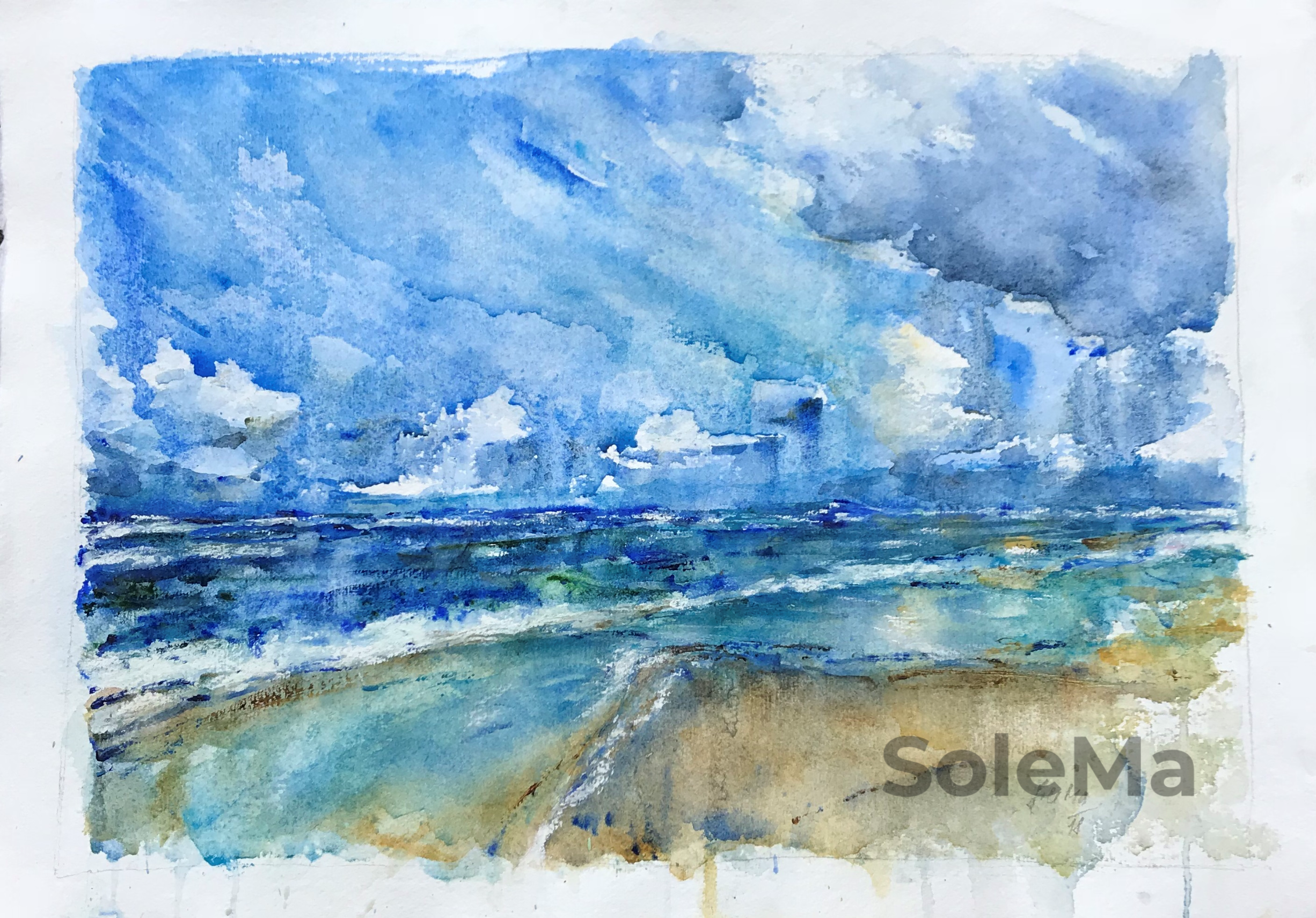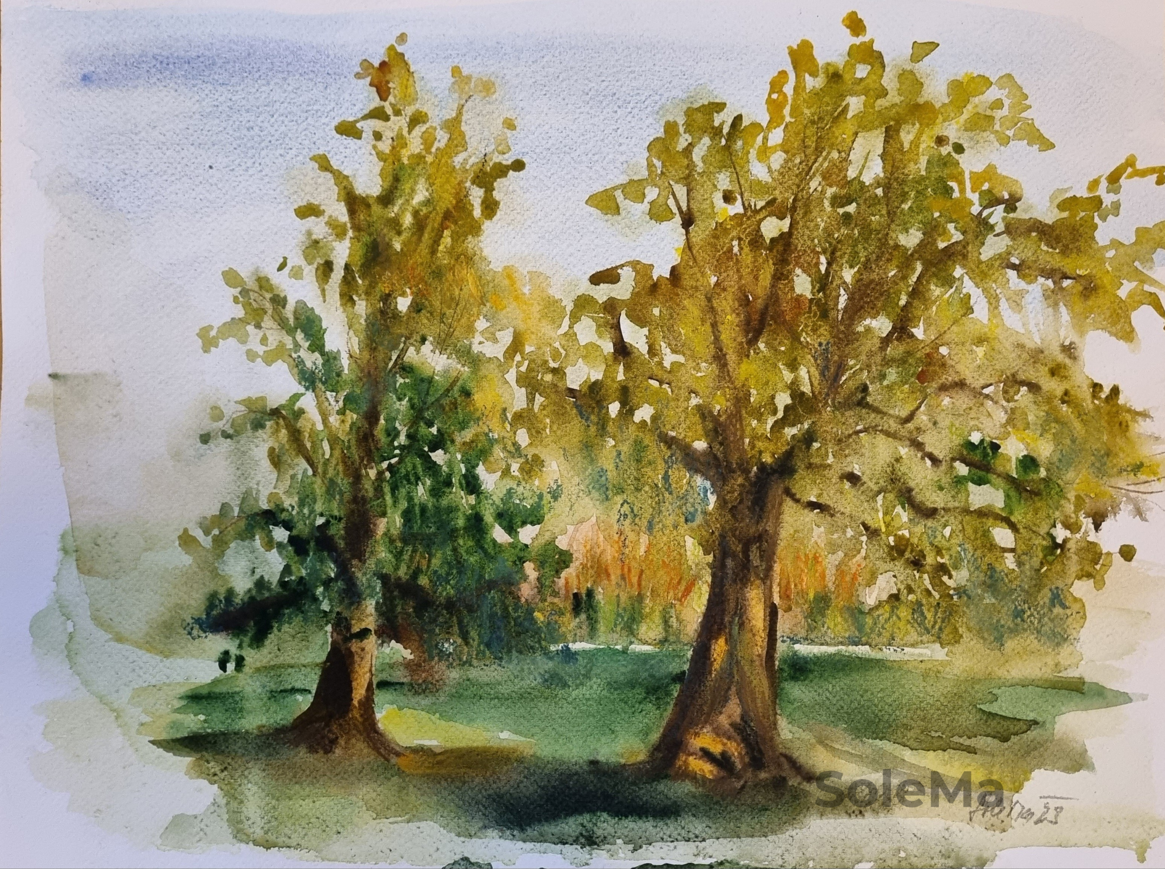 Original watercolor on 300 gsm Artistico Fabriano 100% cotton paper. Paper dimensions: 55 x 76 cm. Artist-quality Daniel Smimth watercolors. Note: colors are brighter than on photo
