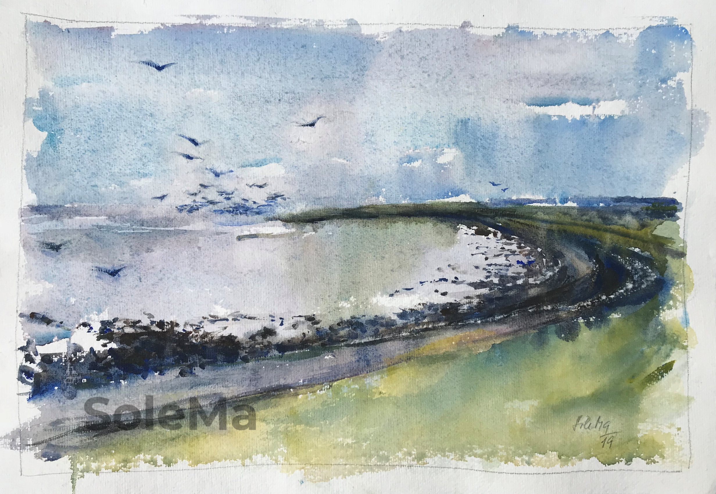 Originalwatercolor on 300 gsm Fabriano paper. Paper dimensions: 28 x 38 cm. Artist-quality Winsor and Newton watercolors.