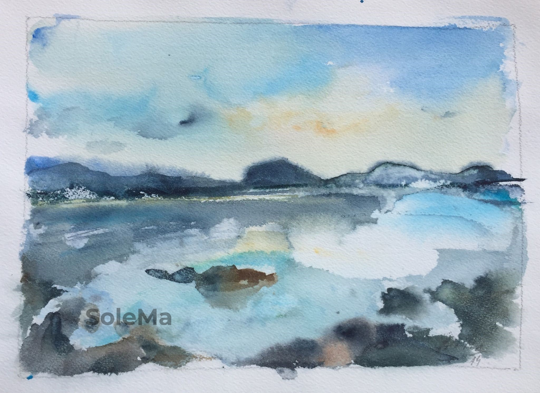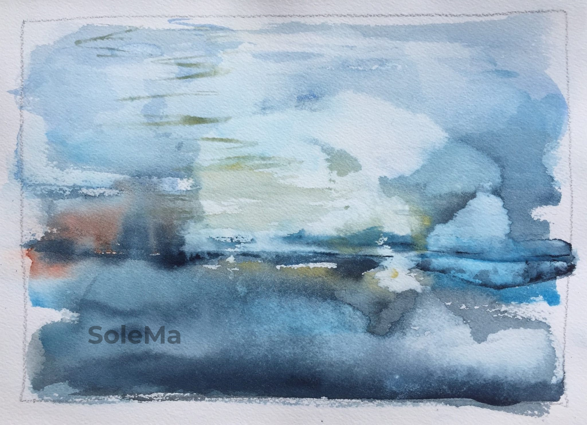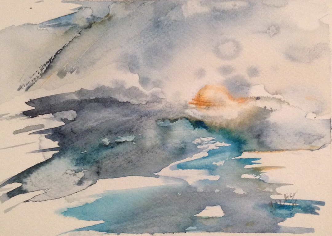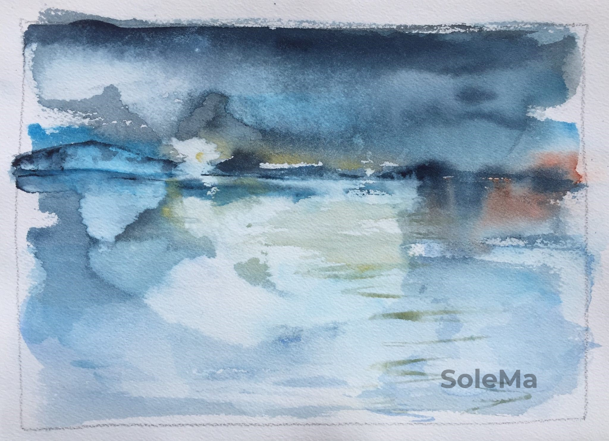 Originalwatercolor on 100% cotton rag 200 gsm Khadi hand made paper. Paper dimensions: 21 x 30 cm. White Nights watercolors.